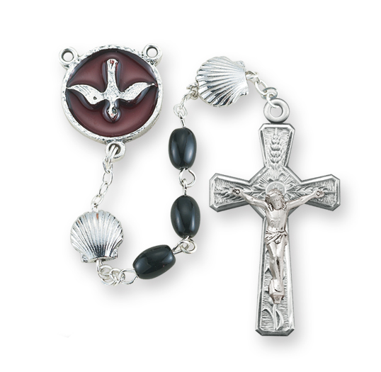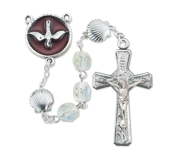19″ Black or Crystal Oval Pearlized Beaded RCIA Rosary with 8mm Silver “Baptismal Shell”.