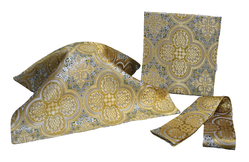 Set includes Chasuble, Understole, Chalice Veil, Burse and Maniple.