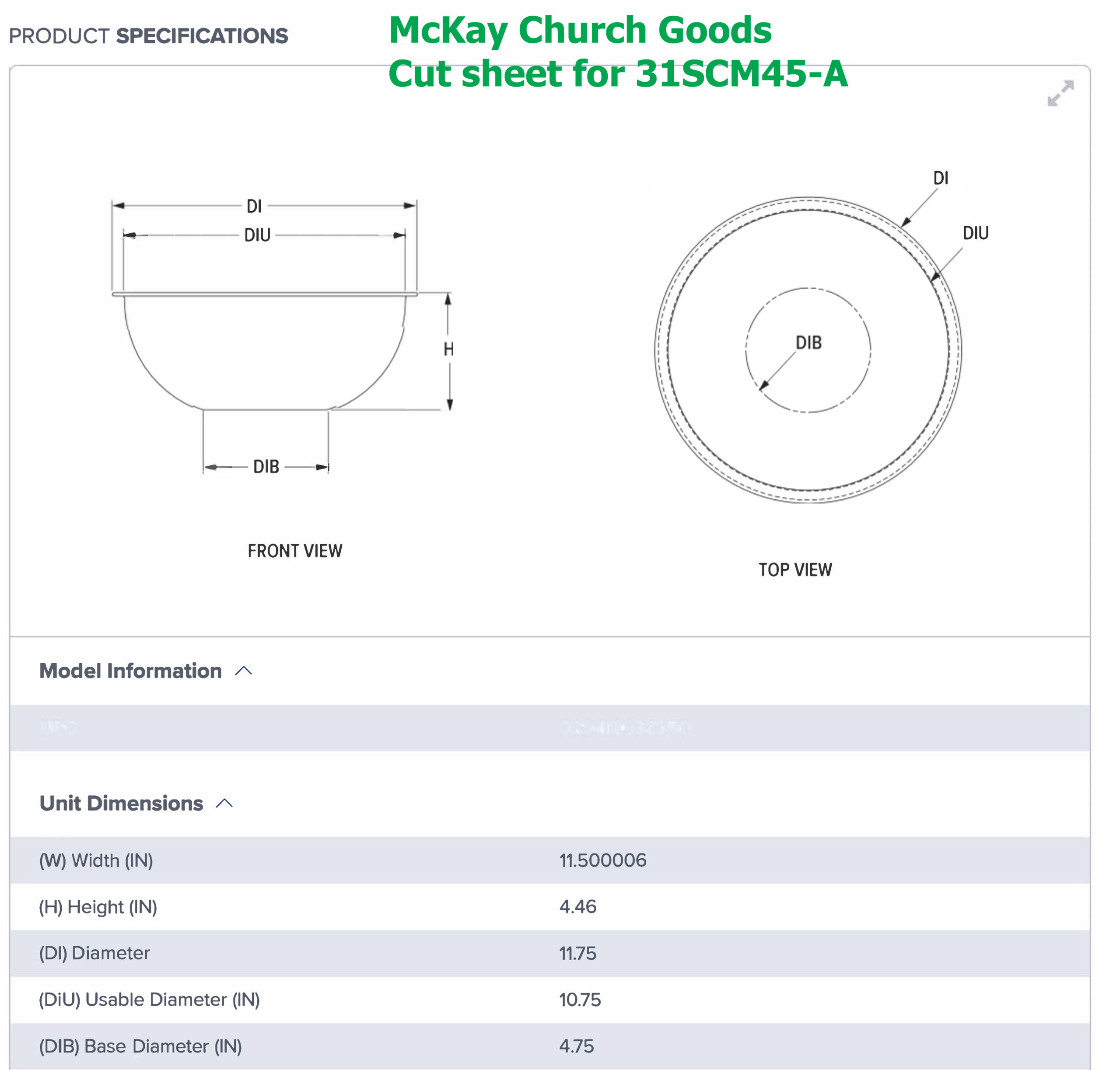 Cover 13″ Diameter, Bowl 11-1/4″ dia., Counter Ring 16-3/4″ dia. Made of aluminum.