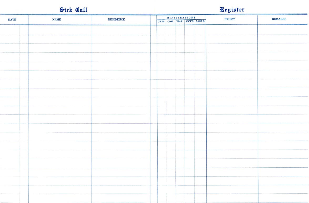 #188 – Standard Sick Call Register Book, 2500 entries, 100 pages, 9″ x 14″ size.