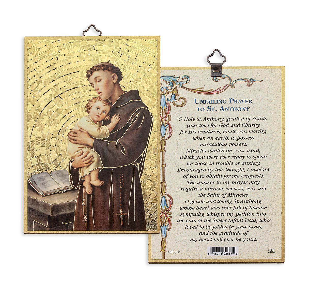 Beautiful 4″ x 6″ St. Anthony gold foil mosaic plaque made in Italy.