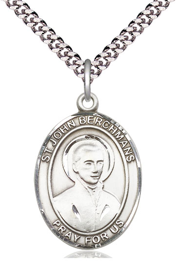 St John Berchman Oval Large Medal, 18″ Lobster Claw Chain #7370PW/18SY, Boxed