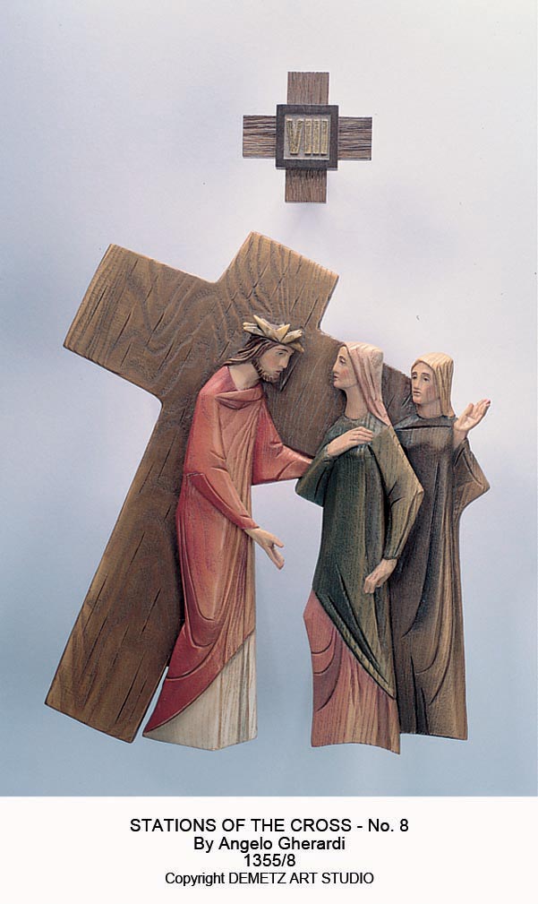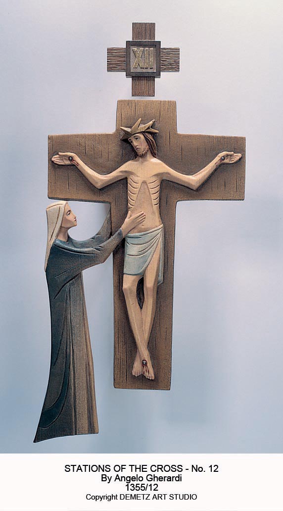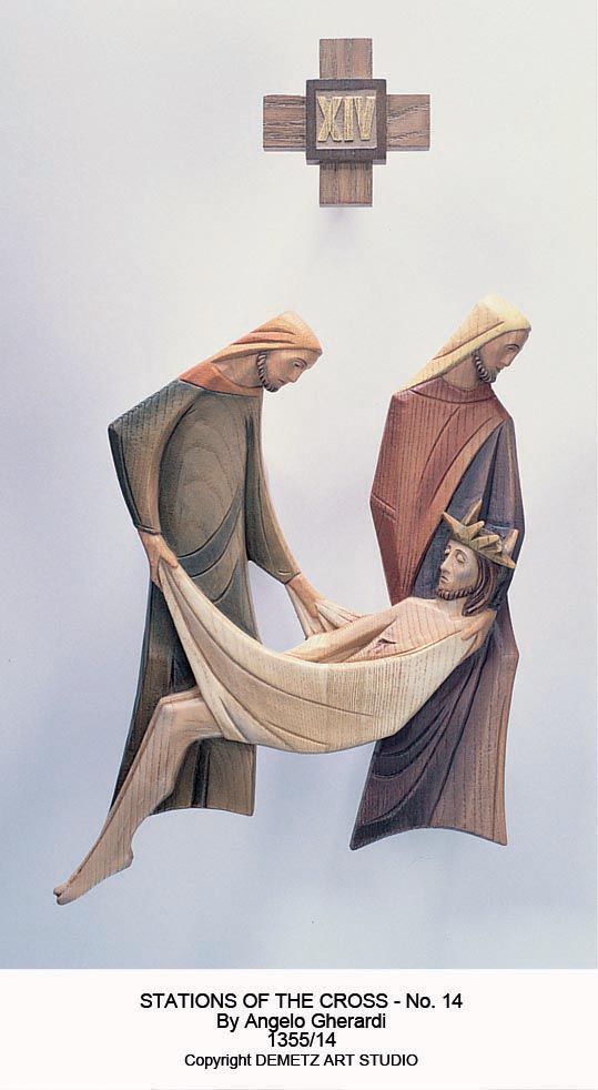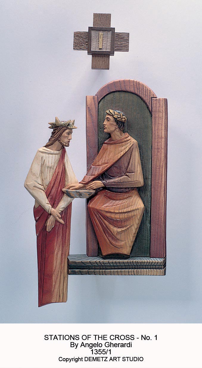 14 Stations of the Cross Carved in Linden Wood; Crosses/Numerals in Proportion.