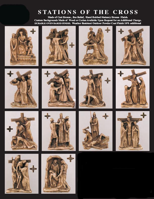 Set of 14 Stations with cast bronze numerals mounted on 3″ square oak wood crosses.