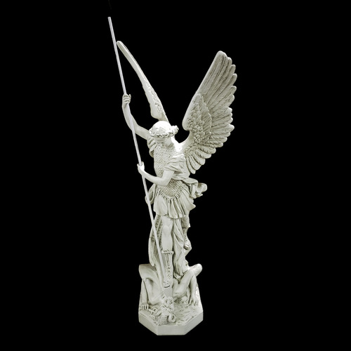 58″ from tip of wing to bottom of base and 43″ from top of St. Michael’s head to bottom of base.