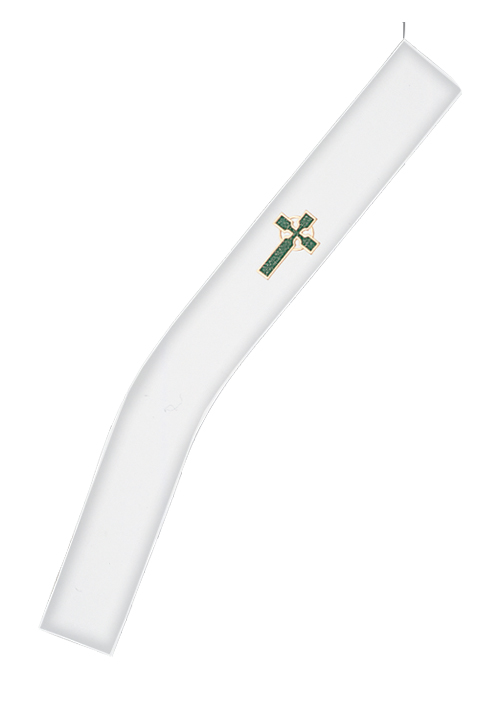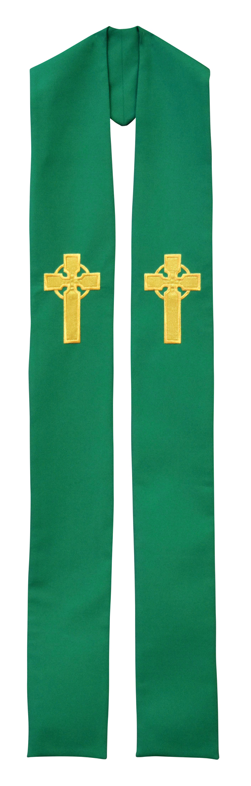 Note: White and off-white stoles are shipped with your choice of either an all gold Celtic cross or a green Celtic cross outlined in gold as shown.