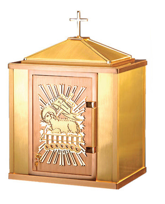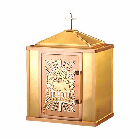 Tabernacle is 25″ tall including the cross, 18″ wide x 14″ deep.