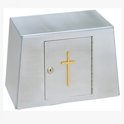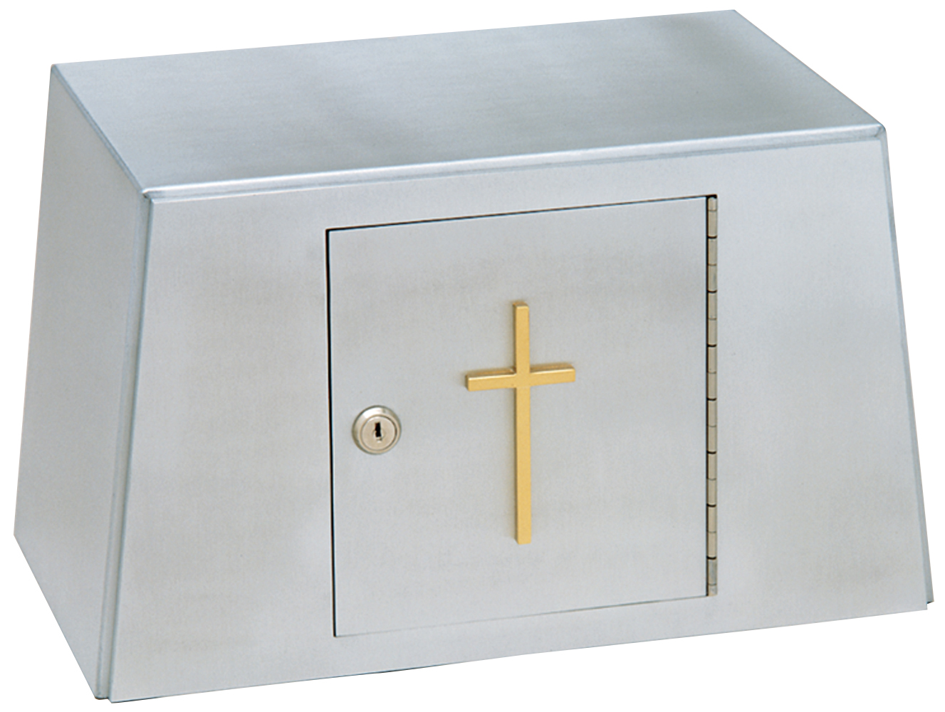 Aluminum Tabernacle has satin finish with a bright brass cross.