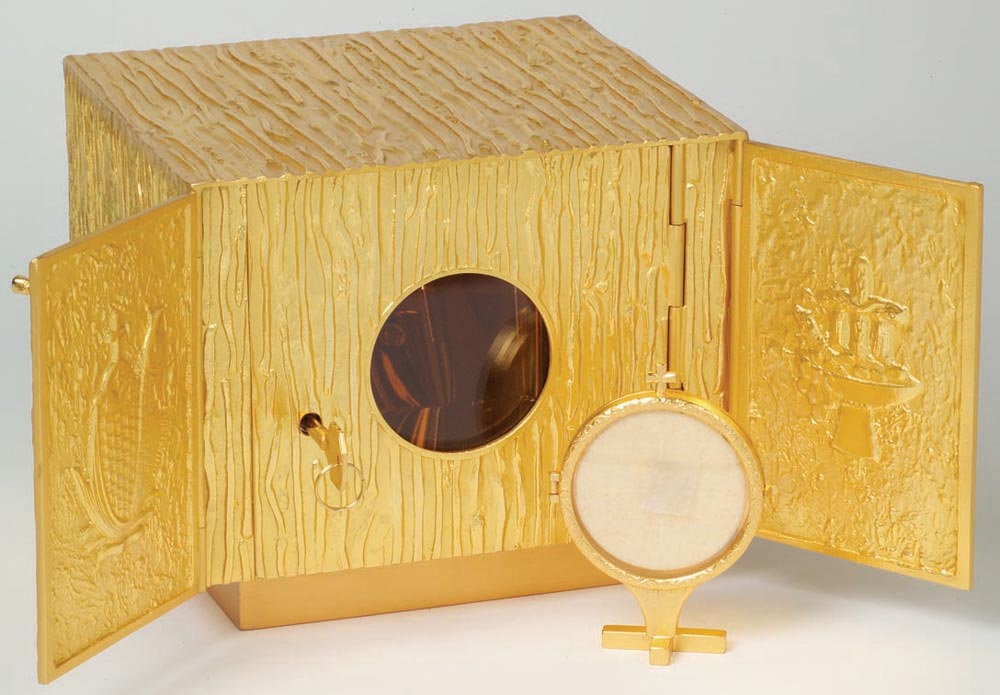 Tabernacle is 24k gold plated and measures 7-1/2″H. x 9″W. x 8″D.
