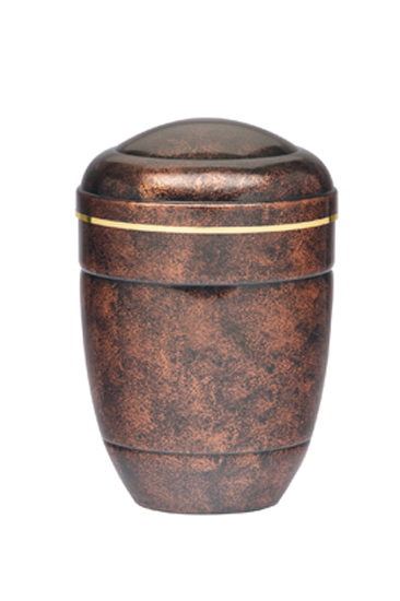 Beautiful Aluminum Urn with brown marble effect and gold accent.